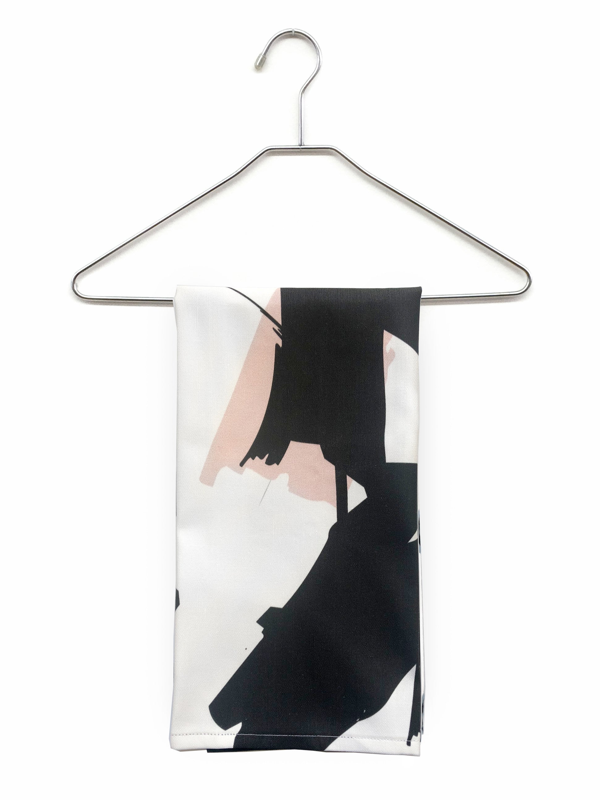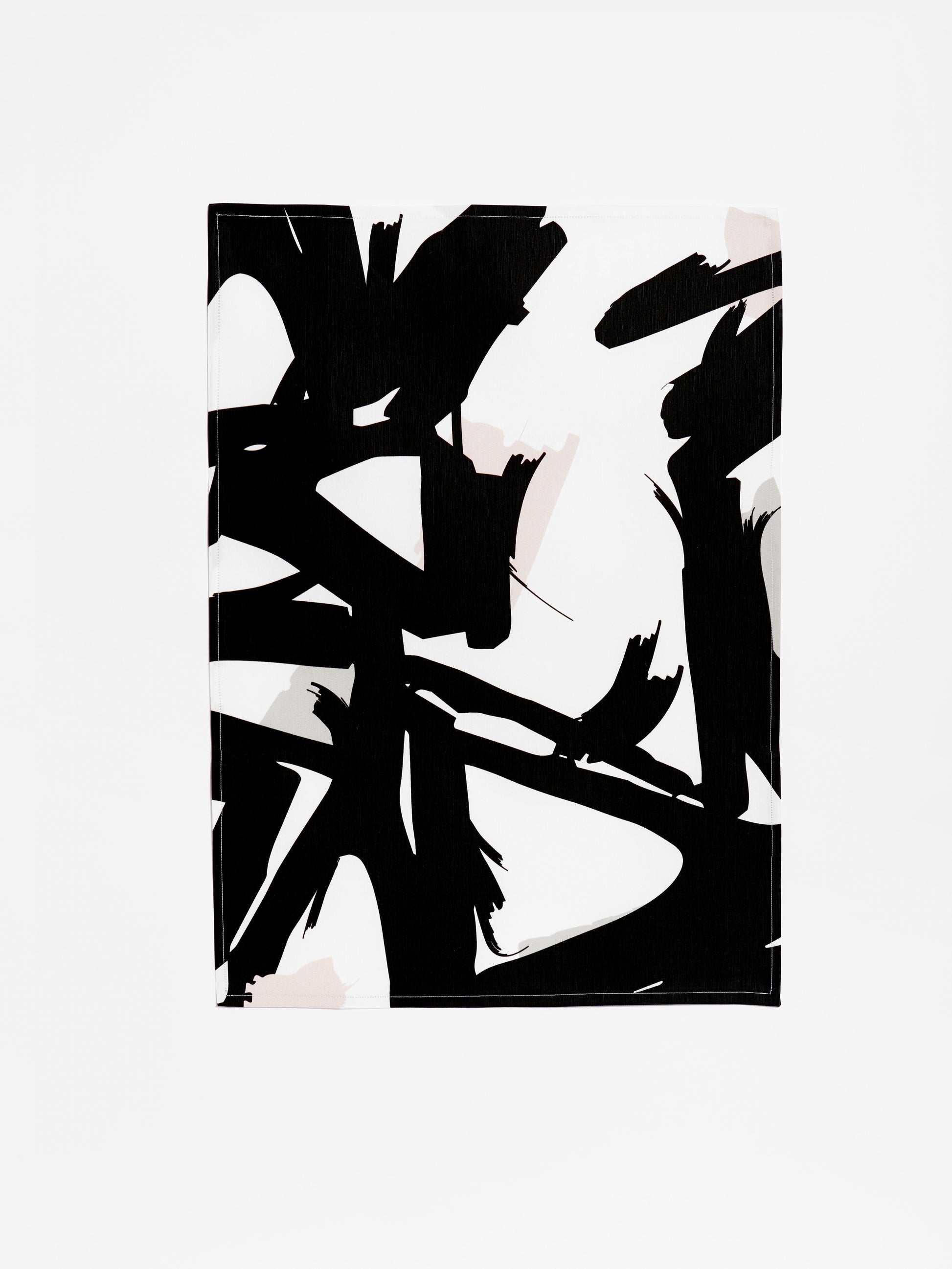 Bold black, gray, and pink abstract features splash across this vibrant towel.