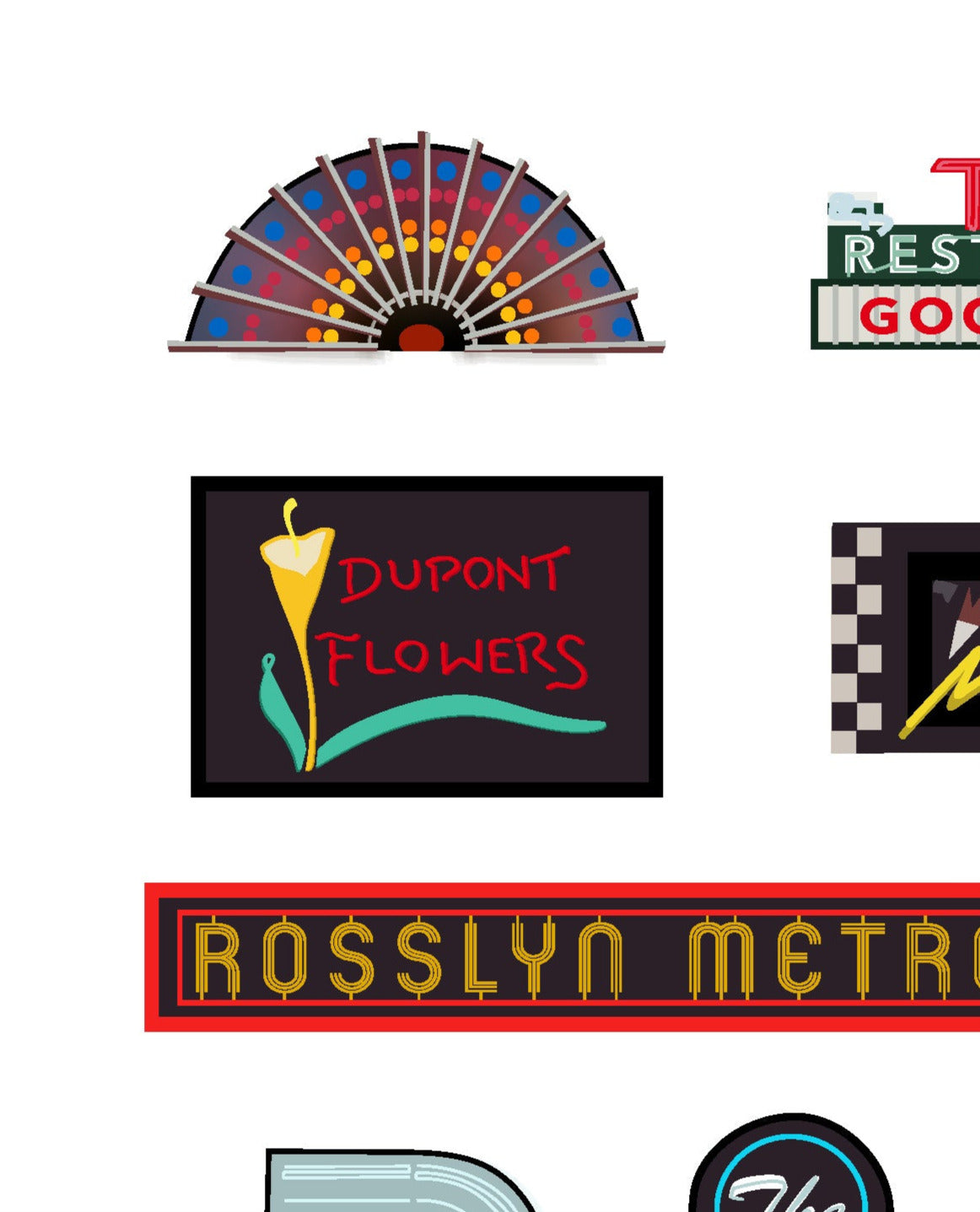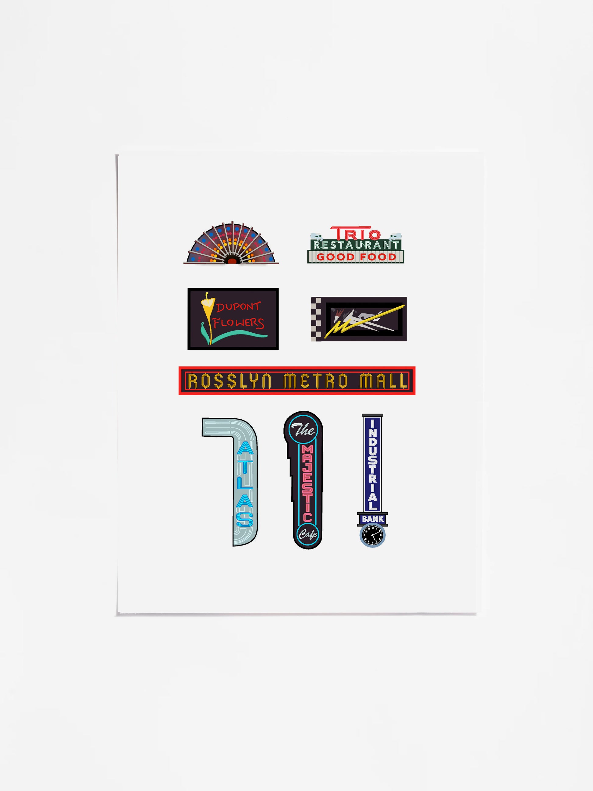 11 x 14 print on professional quality Canson Archival Art Rag paper. Depicts 8 neon signs from the Washington DC area.