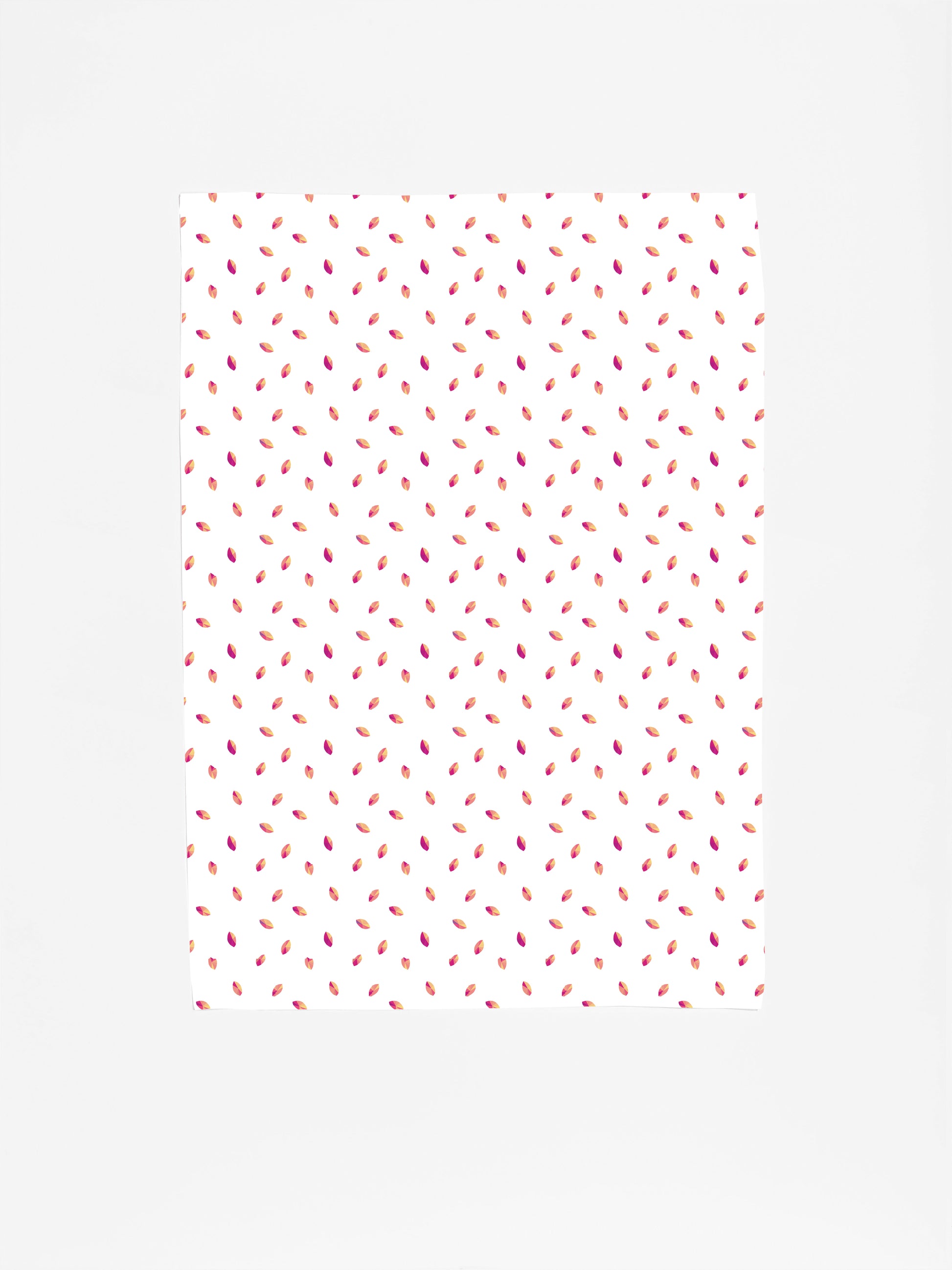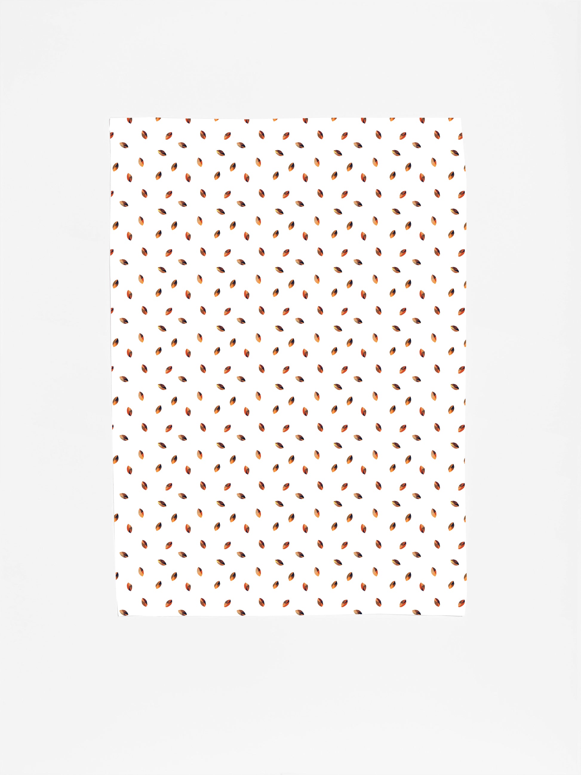 Orange, Brown, and Ochre geometric shapes are featured on this vibrant tea towel.