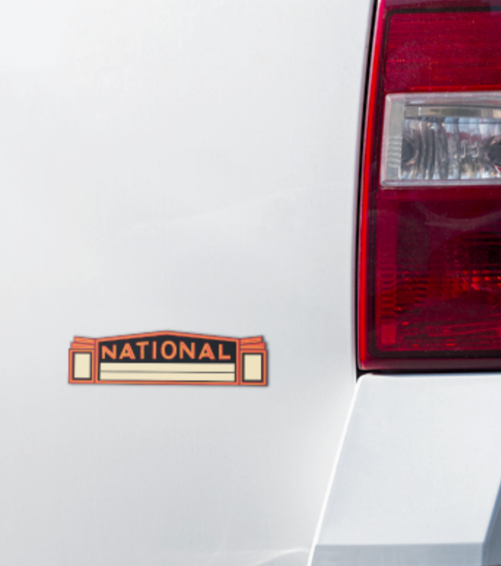 5.41″ × 1.5" National marquee vinyl sticker, durable and scratch-resistant.
